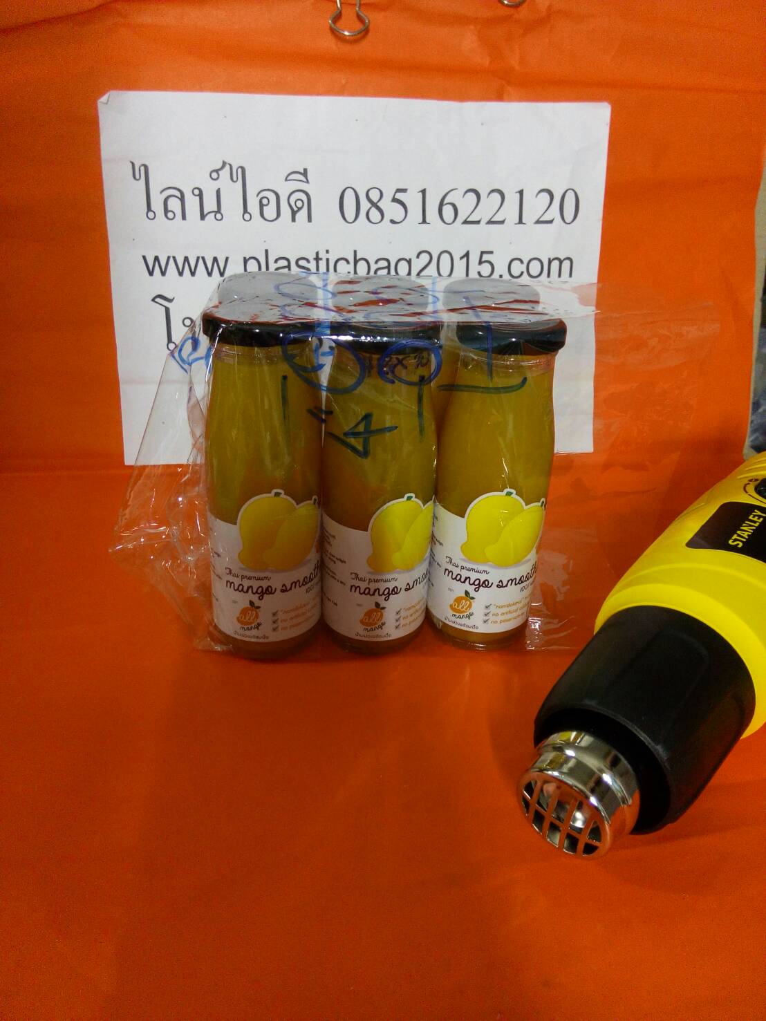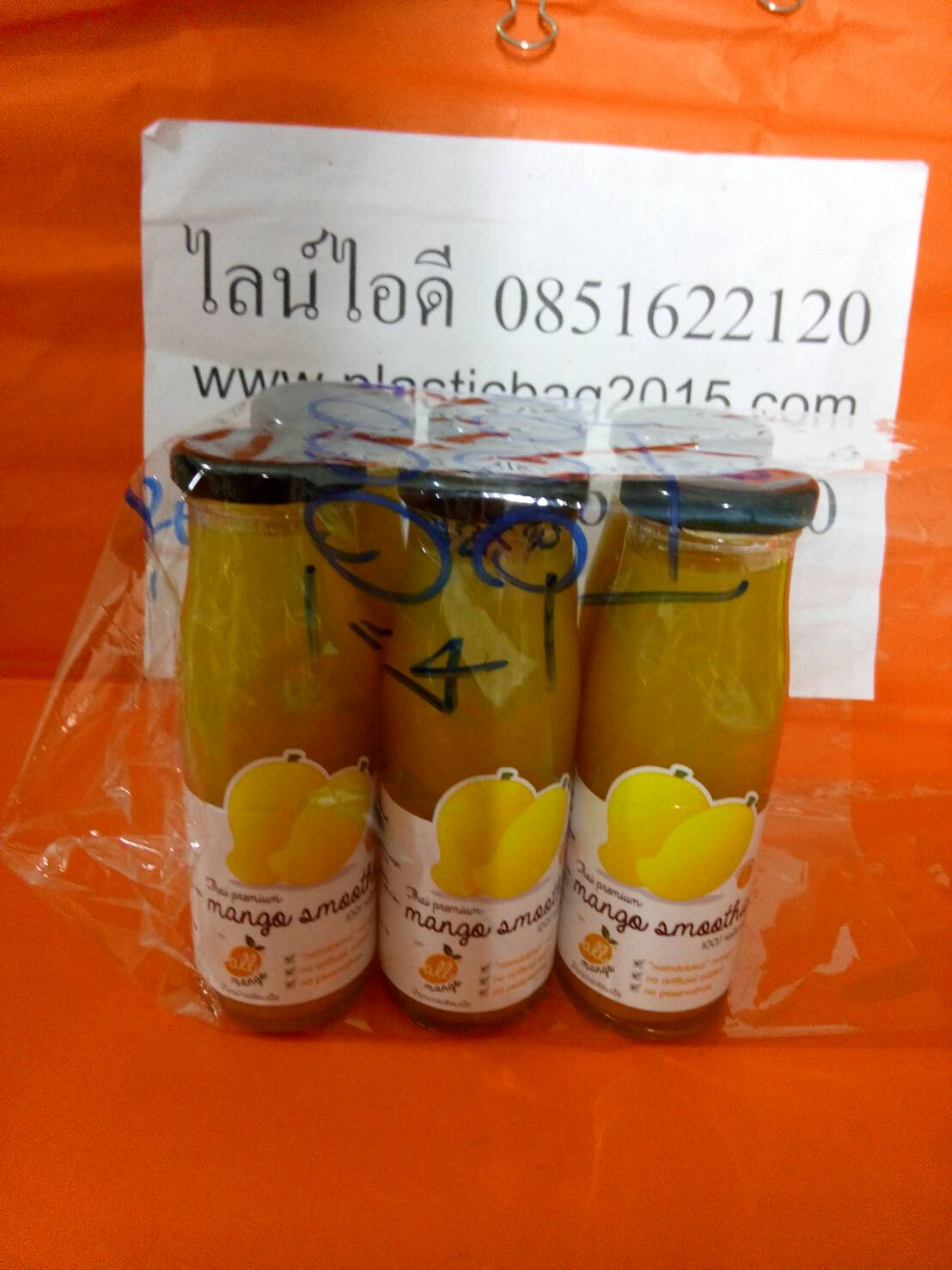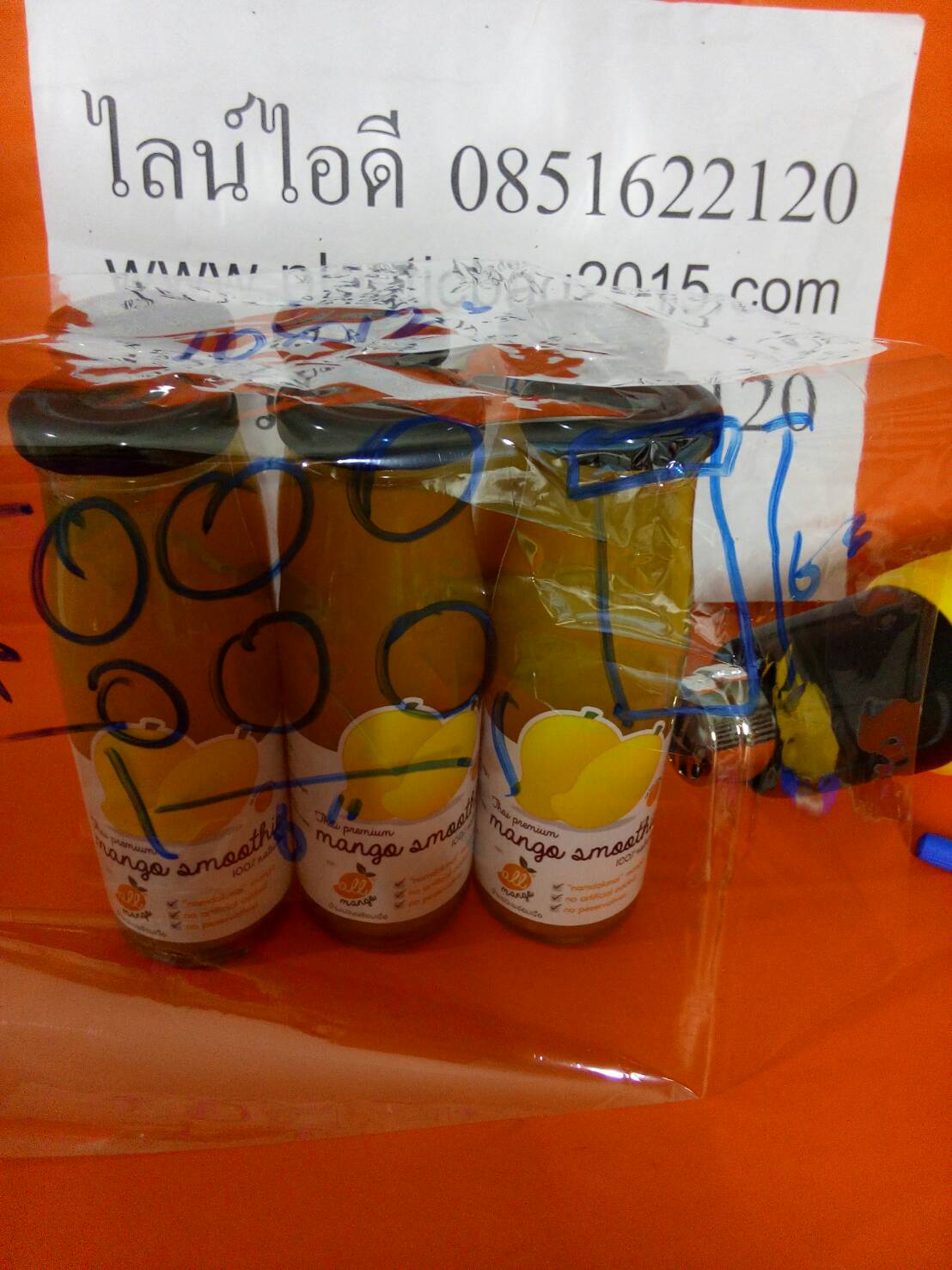 และแบบไม่บรรจุลงตะกร้า สำหรับสินค้าของลูกค้า เป็นน้ำมะม่วง