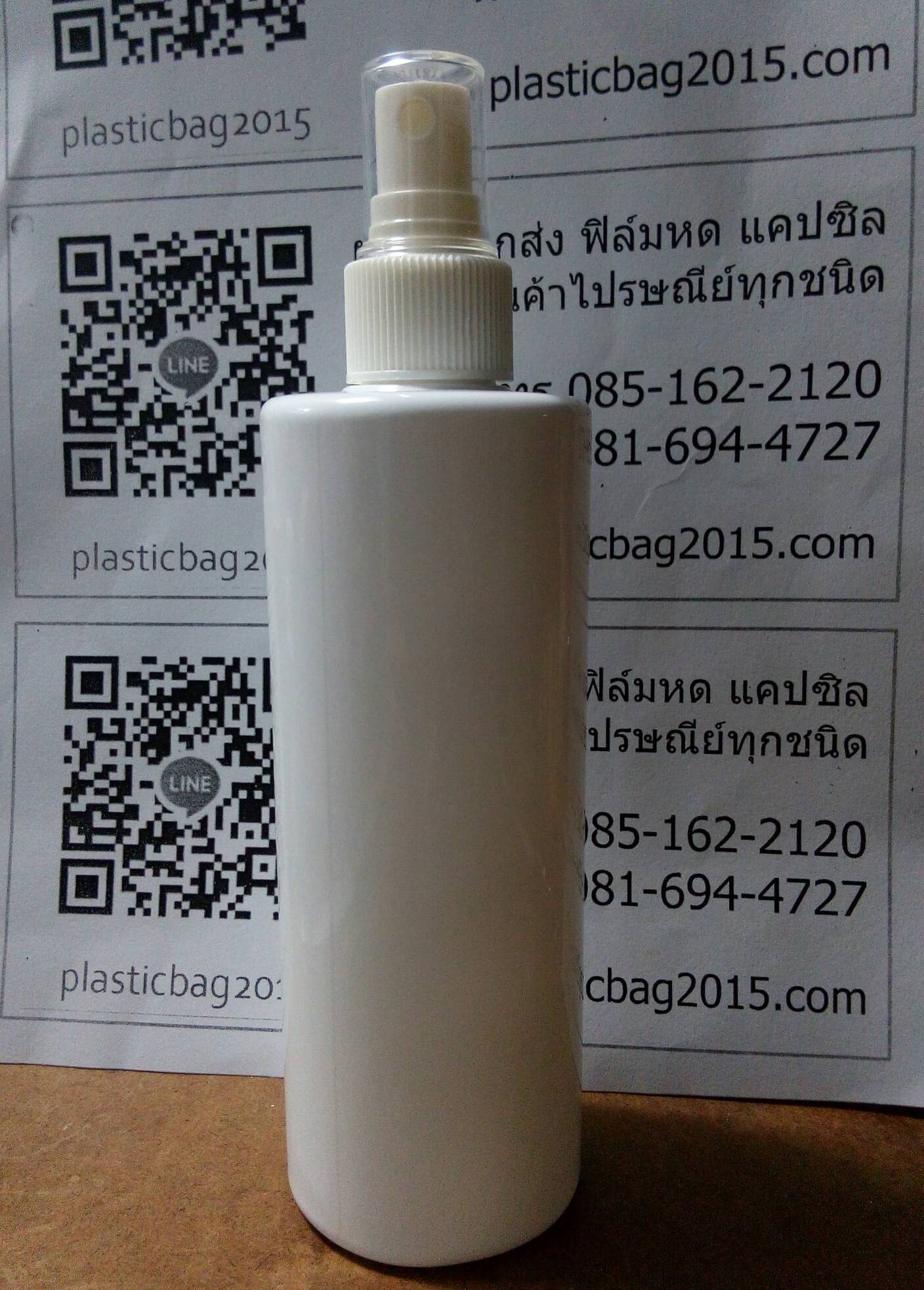 ขวดสเปรย์ เป็นขวดพลาสติก แบบ ขวด PET กลม ไหล่ตัด ขาวขุ่นแป้ง ขนาด 300 ml
