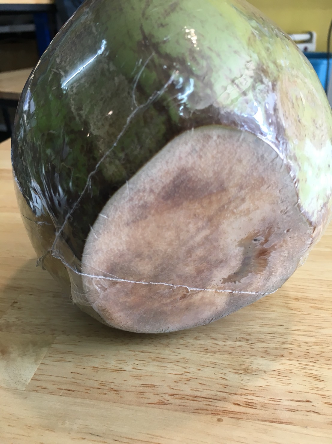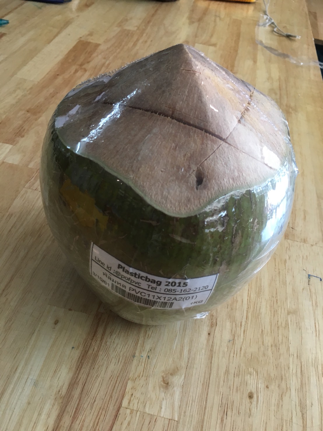 สาธิตเป่าหด ฟิล์มหด หุ้ม ลูกมะพร้าว ป้องกันลูกมะพร้าว เปียกน้ำ